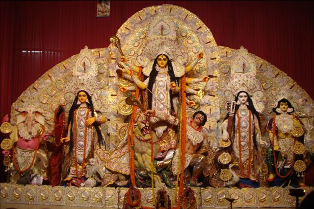 In Hinduism goddess Durga represents power which means Shakti in Hindi. She is the personification of power. It is held that Durga is formed by the collective energies of all the gods, including Shiva, Vishnu and brahma to defeat the demon Mahishashura who could not be defeated by any man. So Durga gains energies from all the gods and aims to kill the demon. The word Durga itself means completency. It has everything and everyone consisting in it, it is self-sufficient. It means the inaccessible. She is regarded as the mother of Ganesha, Kartikeya, Saraswati and Lakshmi along with whom she comes. In Bengal it’s said that Durga Maa comes to her maternal home with her kids when she is welcomed with all love and passion all over the world.
