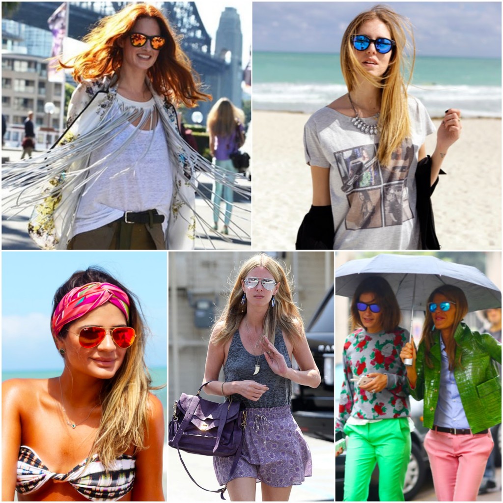 Street style – blue mirrored sunglasses:
