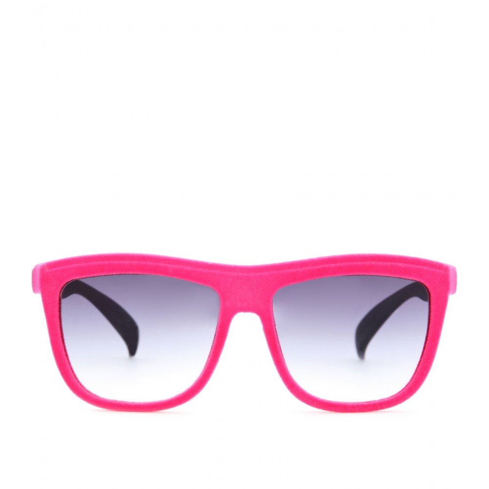For another variation on the traditional sunglasses frame – one that’s very now and liable to stand out in a crowd – there’s always a flocked velvet finish. You’ll find flocking across a variety of styles, from oversized aviators to classic wayfarers, and often they’ll double the impact with bright, bold colours.