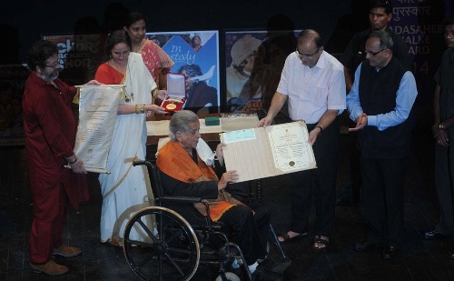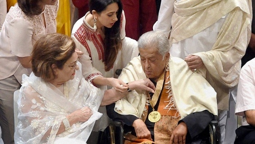 On Sunday, veteran actor Shashi Kapoor received the Dadasaheb Phalke Award at Prithvi Theatre in Mumbai. The actor was accompanied by his children and the Kapoor family and his friends. Here is a look at the event: