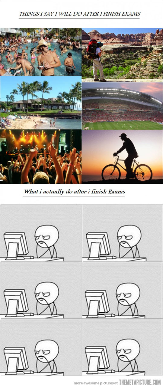 4) Go home and jump into the bed to catch up your lost sleep. Now that exams are finished, you need that period of rest to recover from the stressful exams!
