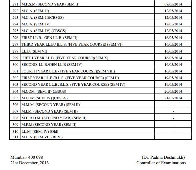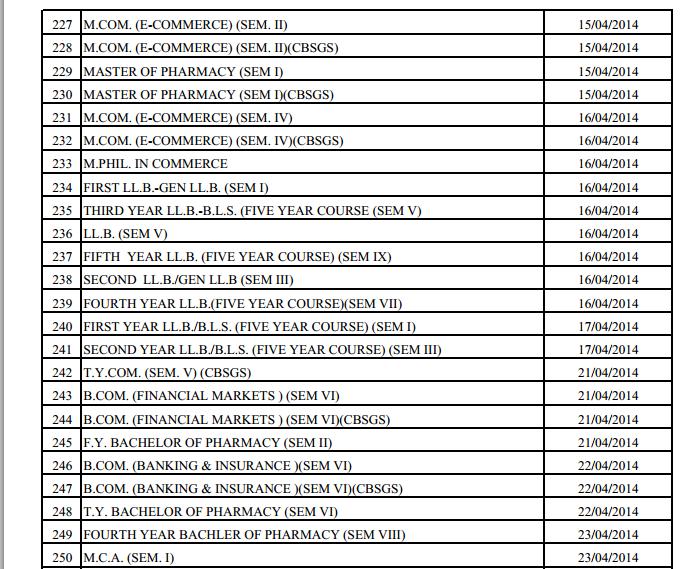 Mumbai University has declared the commencement dates of 100 examinations in Commerce faculty on 21st December 2013.