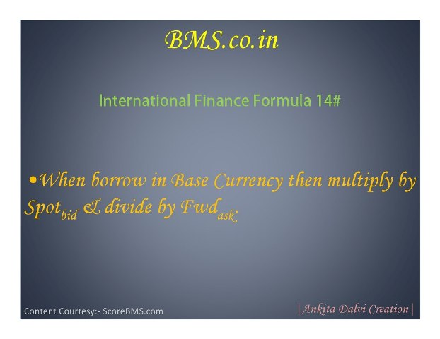 Home BMS Gyan Exam fundas 17 Formulae of International Finance You Need To Know 11 years ago 11 years ago Exam fundas 17 Formulae of International Finance You Need To Know by BMS Team 11 years ago11 years ago 53199views 0 53 Post PaginationPrevious PostPreviousNext PostNext Like it? Share with your friends! 0 53 Posted by BMS Team We, at BMS.co.in, believe in sharing knowledge and giving quality information to our BMS students. We are here to provide and update you with every details required by you BMSites! If you want to join us, please mail to [email protected]. 53 Comments Cancel replyYou must be logged in to post a comment. Connect with: Facebook Google Twitter Previous Post The Journey Of A Successful BMS Content Writer Intern –... by Shreya Karania Next Post Indian Management Thoughts & Practices Question Bank 2015 by BMS Team Facebook comments: