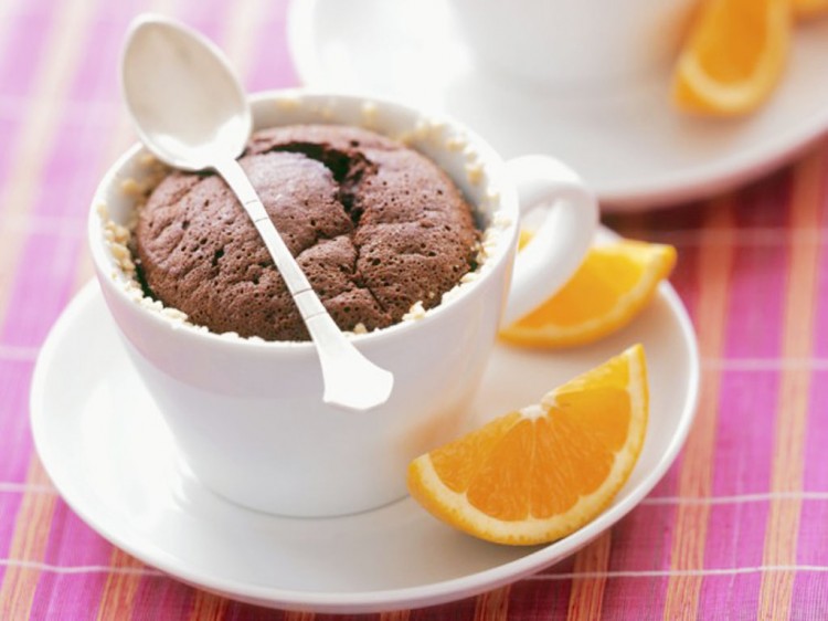 * If necessary, run a knife around the sides of the mug, and tip the still warm cake out of the mug and onto a saucer.