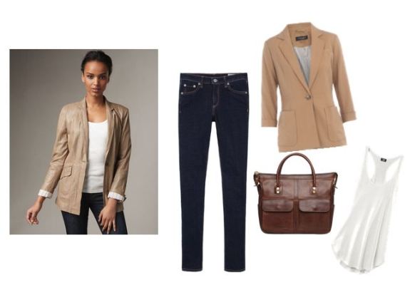 Rock a blazer with skinny jeans and a vintage T-shirt for a look that’s casual with a modern twist. Distressed denim creates a stylish contrast to the serious feel of a structured blazer. A simple, slouchy, semi-sheer white T-shirt is a great pairing to a crisp blazer as well, as are feminine blouses. Tan ankle boots, black ballet flats or leopard print high heels are all fab footwear to sport when rocking this look. A pair of simple stud earrings or a long gold chain offers just the right amount of glitz. Top this look off with an ever-cool fedora to complement the laid-back vibe.