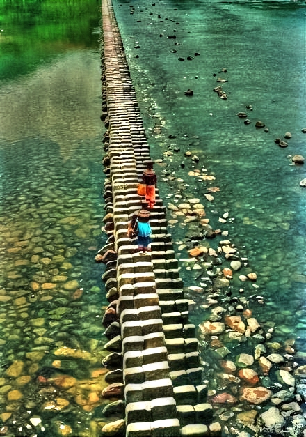 The “Piano Bridge” in Shishui Village, Taitaishun County, Zhejiang Province. It is named so because the bridge resembles piano keys.