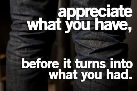 - “Appreciate what you have while you still have it because one day you won’t.”