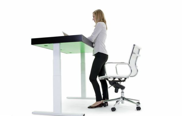 The desk has a built-in touch screen to control and track movement, and can tell users exactly how many calories they burn by standing for part of their working day.