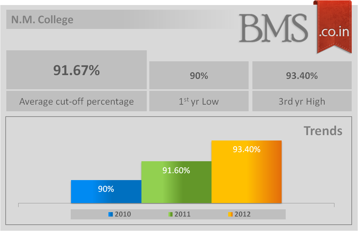The Average cut-off of N.M. College 2013 is 91.67%
