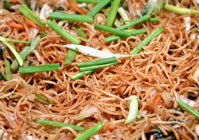 Break the noodles into finger sized sticks. Boil it in hot water with a spoon of refined oil. Drain the water and deep fry till the noodles turn golden and crispy. Once cool, break it into pieces. Heat oil and sauté onion, green chillies. Add carrot, cabbage, pineapple and sauté for 3 to 4 minutes. In a pan, combine the ketchup, liquid corn flour, orange food color, capsicum, sugar and salt. When it forms a thick sauce add the sautéed vegetables. Stir well. Sprinkle the crispy noodles. Serve hot.