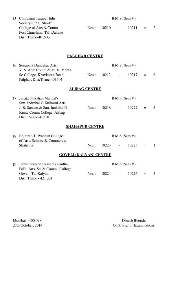 Home Alerts University Alerts B.M.S. (Sem. V) (Old) Seating Arrangement / Exam Centres for November 2014 Exams 11 years ago 11 years ago University Alerts B.M.S. (Sem. V) (Old) Seating Arrangement / Exam Centres for November 2014 Exams by BMS Team 11 years ago11 years ago 281views 0 2 Hello BMSites, Here we present B.M.S. (Sem. V) (Old) Seating Arrangement / Exam Centres for November 2014 Exams Post PaginationPrevious PostPreviousNext PostNext 2014, BMS, Exam centres, exams, november, sem 5, TYBMSLike it? Share with your friends! 0 2 Posted by BMS Team We, at BMS.co.in, believe in sharing knowledge and giving quality information to our BMS students. We are here to provide and update you with every details required by you BMSites! If you want to join us, please mail to [email protected]. 2 Comments Cancel replyYou must be logged in to post a comment. Connect with: Facebook Google Twitter Previous Post Business Ethics Solved Case Studies Asked in Mumbai University TYBMS... by BMS Team Next Post Revised Seating Arrangement for the B.M.S. (Sem.V) (75/25)(CBSGS) November 2014 by BMS Team Facebook comments: