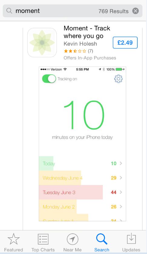 “Moment” is an application which may help you to bring down addiction so that you may use your iPhone less. The app claims that it can help reduce your usage by keeping track of how much time you spend on the awesome piece of tech. The app lets you limit your iPhone uses and will allow you to spend more time doing some other stuff than hanging around with your smartphone. The app was built by felloe iPhone addict Kevin Holesh.