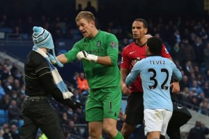 A massively intense derby between Manchester United and their noisy neighbors Man City, it was a game where Man Utd had a late goal from RVP’s free kick and the score was 3-2. Utd’s Rio Ferdinand was hit by a coin and his face was bleeding, soon a city fan came to confront Rio but was not able to get past city’s Joe Hart.