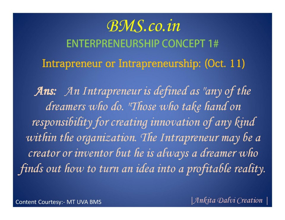 Home BMS Gyan Exam fundas Entrepreneurship Concepts - Last Minute Revision 13 years ago 13 years ago Exam fundas Entrepreneurship Concepts – Last Minute Revision by Ankita Dalvi 13 years ago13 years ago 7105views 0 7 Post PaginationPrevious PostPreviousNext PostNext Like it? Share with your friends! 0 7 Posted by Ankita Dalvi I am kinda person who lives a simple life. Manages to be happy in every situation and enjoys every bit of life 7 Comments Cancel replyYou must be logged in to post a comment. Connect with: Facebook Google Twitter Previous Post International Finance Important Question Bank 2013 - 1 day before... by BMS Team Next Post Entrepreneurship Important Question Bank 2013 - 1 day before the... by BMS Team Facebook comments: