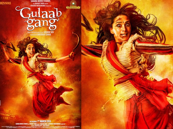 Rajjo, played by Madhuri Dixit is a fearless lady who lives in Madhopur and teaches little girls their alphabets and grown-up girls how to weild a ‘lathi’. Rajjo leads a women’s gang who wears bright pink, oxidized silver and stand up for the downtrodden and against cruel husbands, cops and politicians. Sumitra Devi, played by Juhi Chawla is a politician who is hungry for power and will not even stop at murder for her benefit. The film is a standard good vs evil story. The film is purely fictional and not based on Sampat Pal and the real Gulabi Gang in Bundelkhand. The movie has all the masala like songs, dance, elections, fight and made to empower women against injustice but critics find it illogical and instead recommend to watch ‘Gulabi Gang’ released 2 weeks ago across India at few cinema halls.