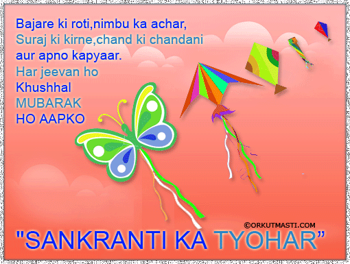 Mandir ki ghanti, Arti ki thali, Nadi ke kinare suraj ki lali, Zindagi me aye khushiyo ki bahar, Apko mubarak ho sankrant ka tyohar.