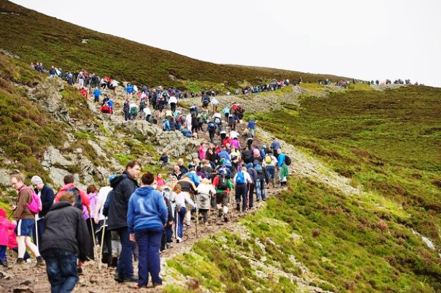Reek Sunday is celebrated on July 27, 2014. Reek Sunday (or Garland Sunday) is an annually pilgrimage in Ireland. On the last Sunday in July, pilgrims climb Ireland’s “holiest mountain”, Croagh Patrick (Cruach Phádraig) in County Mayo, traditionally in their bare feet. The pilgrimage has been held yearly for about 1,500 years. It is held in honour of Saint Patrick who, according to tradition, spent 40 days fasting on the mountain in the year 441, following Jesus and Moses.