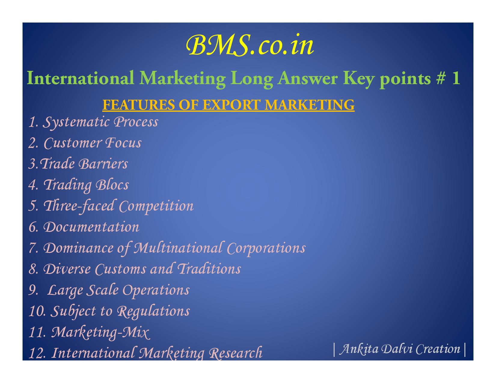 Home BMS Gyan Exam fundas International Marketing Long Answers Keypoints 13 years ago 13 years ago Exam fundas International Marketing Long Answers Keypoints by Ankita Dalvi 13 years ago13 years ago 11126views 0 11 Post PaginationPrevious PostPreviousNext PostNext Like it? Share with your friends! 0 11 Posted by Ankita Dalvi I am kinda person who lives a simple life. Manages to be happy in every situation and enjoys every bit of life 11 Comments Cancel replyYou must be logged in to post a comment. Connect with: Facebook Google Twitter Previous Post BMS Confession # 1 by karan Next Post Retail Management Question Bank 2013 - Score Education by Score Tutorial Facebook comments: