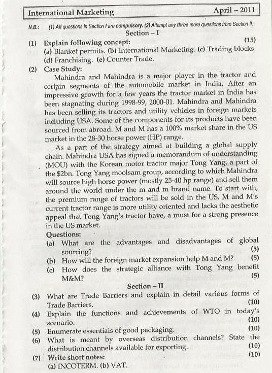 Home BMS Gyan Question Papers International Marketing Mumbai University April 2011 Question Paper 12 years ago 12 years ago Question Papers International Marketing Mumbai University April 2011 Question Paper by BMS Team 12 years ago12 years ago 6145views 1 6 Post PaginationPrevious PostPreviousNext PostNext Like it? Share with your friends! 1 6 Posted by BMS Team We, at BMS.co.in, believe in sharing knowledge and giving quality information to our BMS students. We are here to provide and update you with every details required by you BMSites! If you want to join us, please mail to [email protected]. 6 Comments Cancel replyYou must be logged in to post a comment. Connect with: Facebook Google Twitter Pingback: The Complete TY-BMS Sem 6 Study Guides, Strategies, Exam Resources You Shouldn’t Miss! | BMS.co.in Previous Post International Marketing Mumbai University April 2012 Question Paper by BMS Team Next Post Retail Management Mumbai University April 2013 Question Paper by BMS Team Facebook comments: