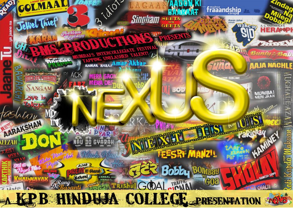 THE INTERCOLLEGIATE YOUTH FESTIVAL neXus PROVIDES A PLATFORM TO THE STUDENTS FROM VARIOUS COLLEGES TO SHOW THEIR TALENT.neXus,THE FIRST INTERCOLLEGIATE YOUTH FESTIVAL OF K.P.B.HINDUJA COLLEGE IS A PERFECT BLEND OF KNOWLEDGE AND REALISM. INTELLECT AND COMMON SENSE.IT IS A DREAM OF DEDICATED AND MOTIVATED MEMBERS WHO WORK TOGETHER AS A TEAM TO MAKE neXus A SUCCESS.THE INTERCOLLEGIATE MANAGEMENT YOUTH FESTIVAL ORGANIZED BY ASPIRING MANAGEMENT STUDENTS OF K.P.B.HINDUJA COLLEGE IS ALL SET TO CAPTIVATE THE YOUTH.