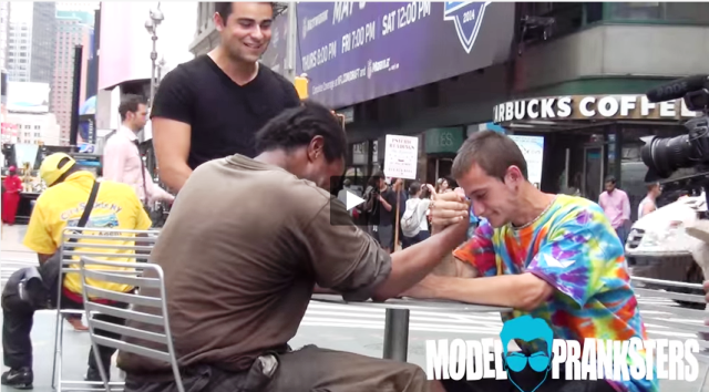 Kind Pranksters Ask Homeless Men to Arm Wrestle for Money