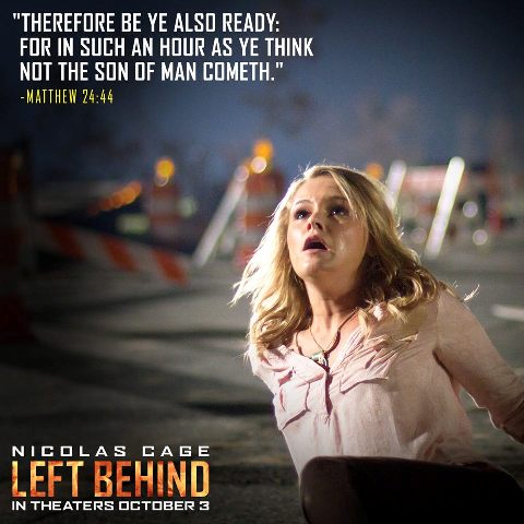 Left Behind is an upcoming American apocalyptic thriller film which is directed by Vic Armstrong and written by Paul LaLonde and John Patus. The movie is based on the novel of same name, which is based on an interpretation of Bible prophecy, written by Tim LaHaye and Jerry B. Jenkins, and is a reboot of Left Behind: The Movie. The movie is set to release on October 3, 2014 worldwide.
