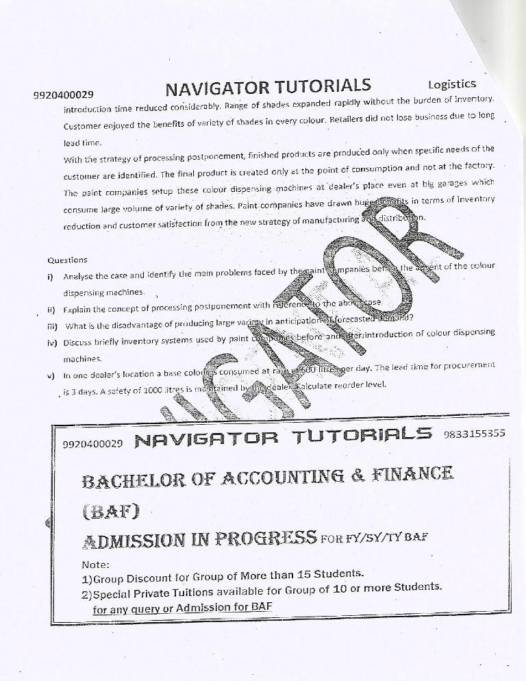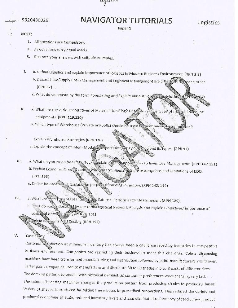 Below is the Prelims question paper / practice question paper for November 2014 TYBMS Sem 5 Exam of Logistics Management.