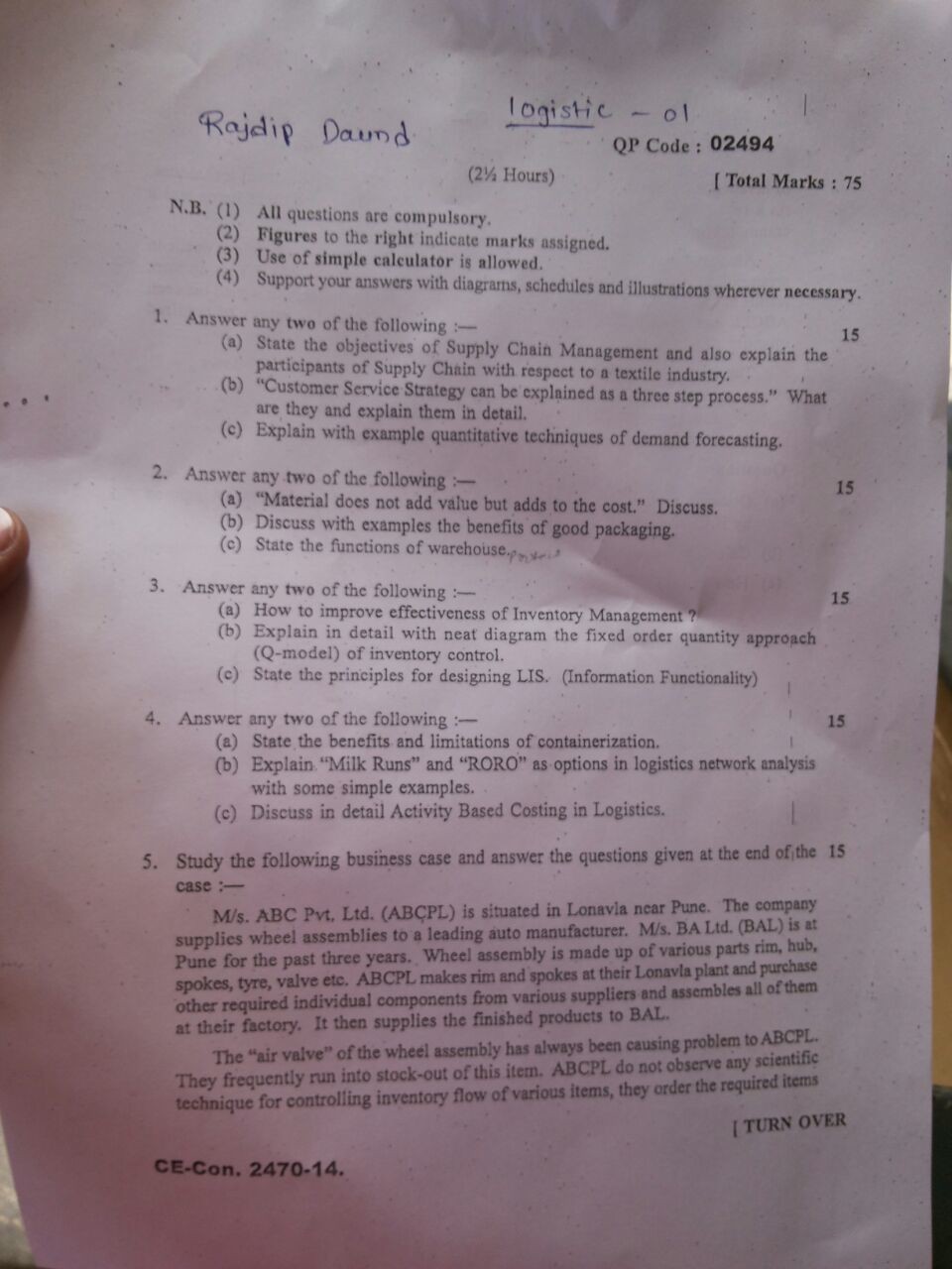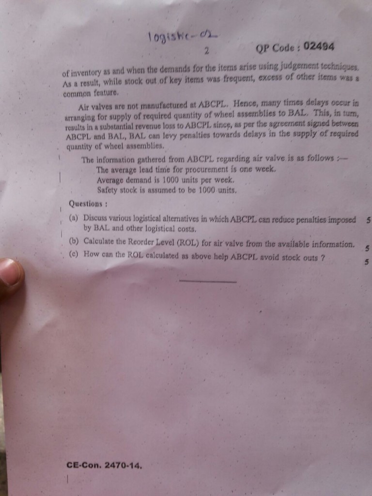 Logistics Management Solved Answer Paper – 10th November 2014 Exam