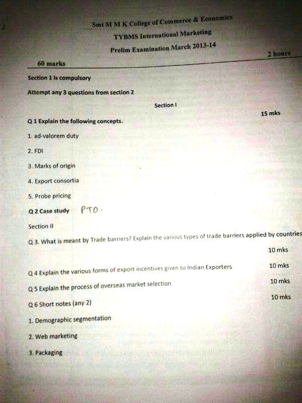 Home BMS Gyan Question Papers M.M.K College International Marketing Prelims Question Paper 2014 12 years ago 12 years ago Question Papers M.M.K College International Marketing Prelims Question Paper 2014 by BMS Team 12 years ago12 years ago 4132views 0 4 Post PaginationPrevious PostPreviousNext PostNext Like it? Share with your friends! 0 4 Posted by BMS Team We, at BMS.co.in, believe in sharing knowledge and giving quality information to our BMS students. We are here to provide and update you with every details required by you BMSites! If you want to join us, please mail to [email protected]. 4 Comments Cancel replyYou must be logged in to post a comment. Connect with: Facebook Google Twitter Pingback: The Complete TY-BMS Sem 6 Study Guides, Strategies, Exam Resources You Shouldn’t Miss! | BMS.co.in Previous Post M.M.K. College Retail Management Prelims Question Paper 2014 by BMS Team Next Post M.M.K. College Entrepreneurship Management Prelims Question Paper 2014 by BMS Team Facebook comments: