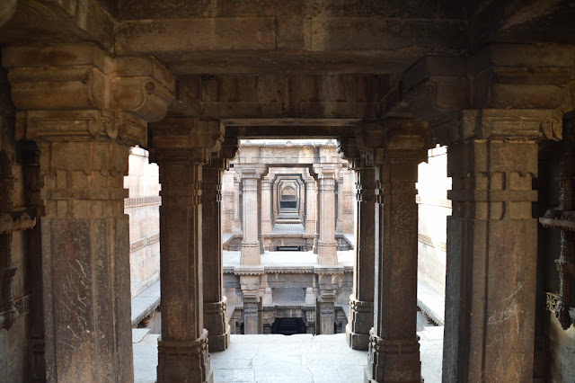 In the Asarwa village, northeast of the walled its between a sleepy residential area and the coal yards of Ahmedabad on a little side street, one will find Dada Harir Vav. At ground level one may not see much, but as one step up to the top of the stairs, one suddenly sees a deep cascade of stairs and columns plunging down several stories, with shafts of light falling on beautiful carvings and birds and bats flitting in and out of the shadowy corners.