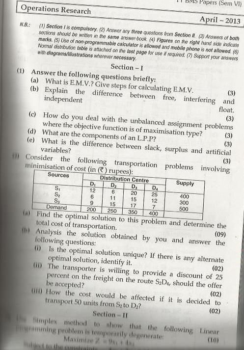 Home BMS Gyan Question Papers Operations Research Mumbai University April 2013 Exam Question Paper 12 years ago 12 years ago Question Papers Operations Research Mumbai University April 2013 Exam Question Paper by BMS Team 12 years ago12 years ago 14658views -1 14 Post PaginationPrevious PostPreviousNext PostNext Like it? Share with your friends! -1 14 Posted by BMS Team We, at BMS.co.in, believe in sharing knowledge and giving quality information to our BMS students. We are here to provide and update you with every details required by you BMSites! If you want to join us, please mail to [email protected]. 14 Comments Cancel replyYou must be logged in to post a comment. Connect with: Facebook Google Twitter I NEED ANS FOR THE SAME QUESTION PAPERS Log in to Reply Pingback: The Complete TY-BMS Sem 6 Study Guides, Strategies, Exam Resources You Shouldn’t Miss! | BMS.co.in Previous Post Operations Research Mumbai University October 2013 Exam Question Paper by BMS Team Next Post Operations Research Mumbai University October 2012 Exam Solved Paper by BMS Team Facebook comments: