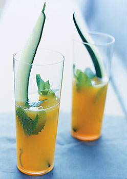 This mango sparkle is both indulgent and uplifting. You might choose to add a little Champagne or Prosecco instead of sparkling water.