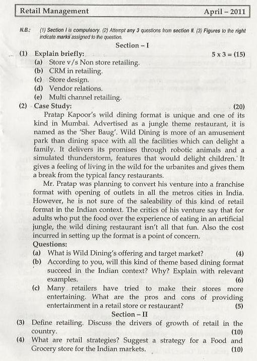 Home BMS Gyan Question Papers Retail Management Mumbai University April 2011 Question Paper 12 years ago 12 years ago Question Papers Retail Management Mumbai University April 2011 Question Paper by BMS Team 12 years ago12 years ago 2221views 0 2 Post PaginationPrevious PostPreviousNext PostNext Like it? Share with your friends! 0 2 Posted by BMS Team We, at BMS.co.in, believe in sharing knowledge and giving quality information to our BMS students. We are here to provide and update you with every details required by you BMSites! If you want to join us, please mail to [email protected]. 2 Comments Cancel replyYou must be logged in to post a comment. Connect with: Facebook Google Twitter Pingback: The Complete TY-BMS Sem 6 Study Guides, Strategies, Exam Resources You Shouldn’t Miss! | BMS.co.in Previous Post Retail Management Mumbai University April 2012 Question Paper by BMS Team Next Post Indian Management Thoughts & Practices Important Chapters 2014 by BMS Team Facebook comments: