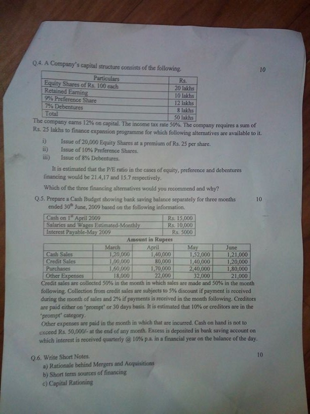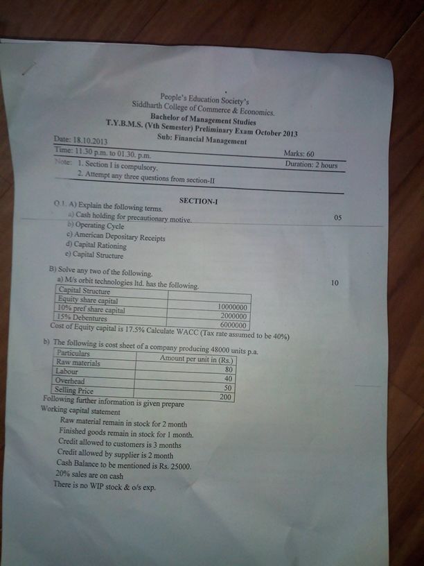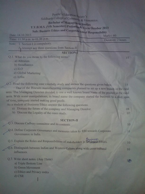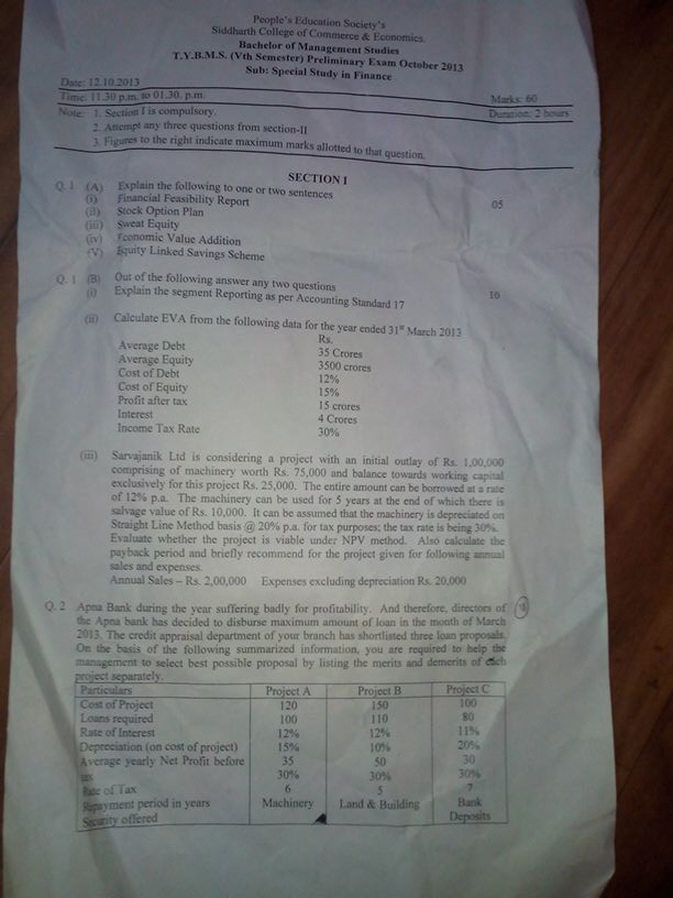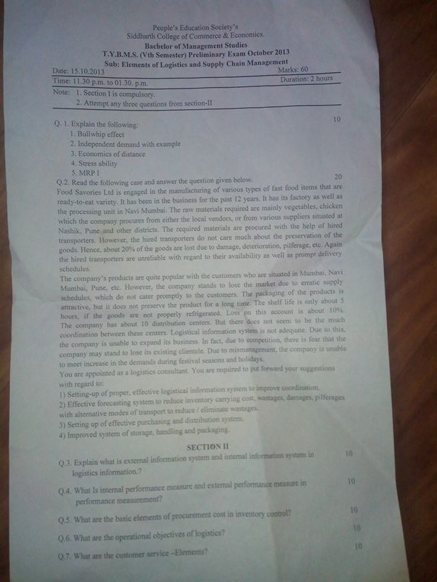 Siddharth College TYBMS Sem 5 Prelims Question Papers 2013