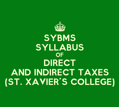 Direct and Indirect Taxes is a SYBMS Sem 3 subject at St. Xavier’s College. Direct and Indirect Taxes aims to impart indepth and extensive practical knowledge and skills in direct and indirect taxation.