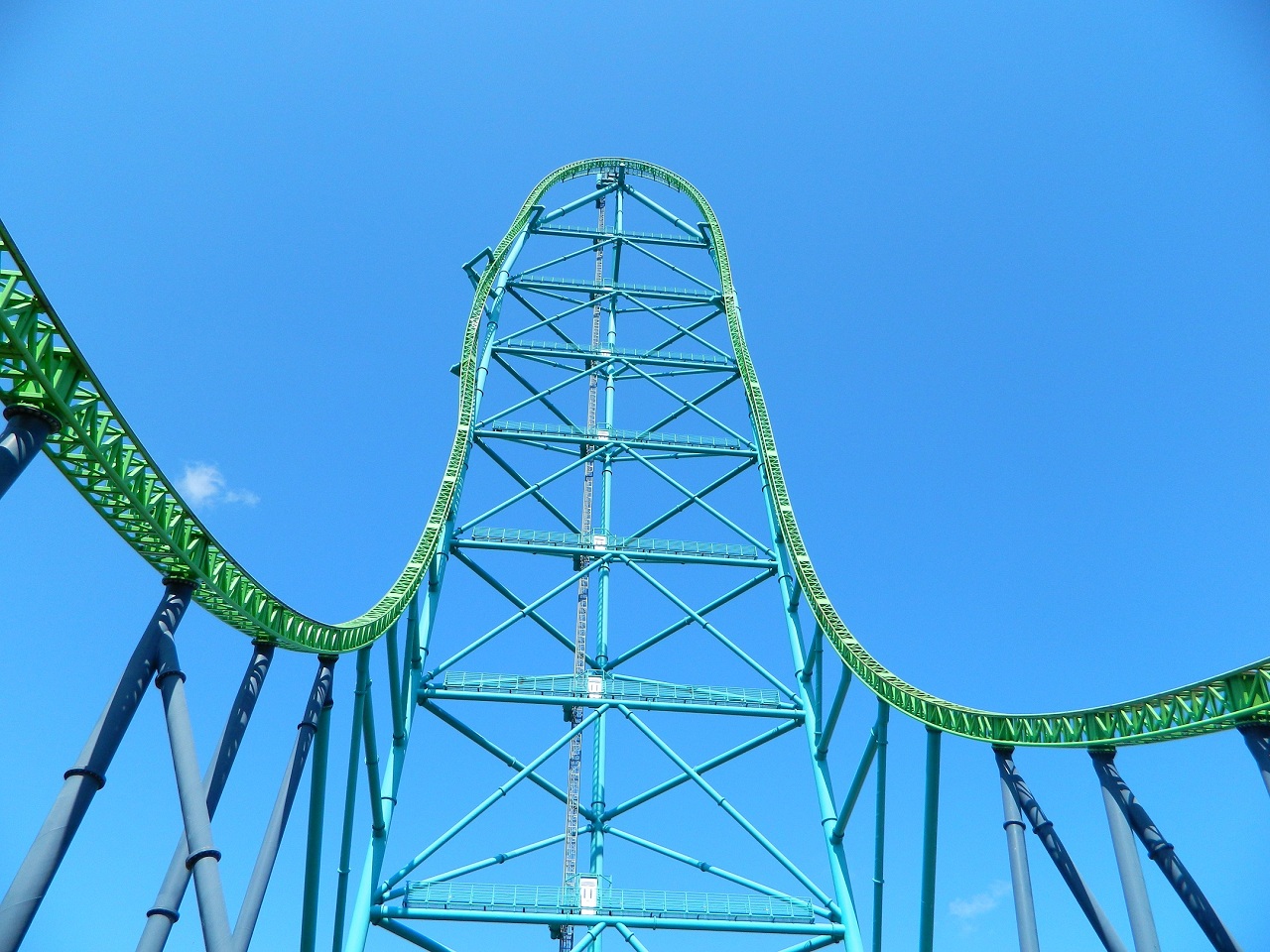 When this ride opened at Six Flags Great Adventure in Jackson, N.J, it wrested the title of tallest and fastest roller coaster from the Top Thrill Dragster at Cedar Point. You’ll leave the station going from 0 to 128 miles per hour in a jaw-dropping 3.5 seconds. Actually, there won’t even be time for your jaw to drop. You’ll be shooting up that impossible height so fast, you won’t even have time to think, so just hang on. It’s 90° straight up. And once you get to the top you’ll be plummeting right back down in a 270-degree spiral that is not recommended for wimps.To put that in perspective, it reaches 128 m.p.h. in the time it took you to read the words can reach a speed of 128 m.p.h. in 3.5 seconds. The entire ride takes just 59 seconds, what you do with the remaining second of the most exciting minute of your life is up to you.