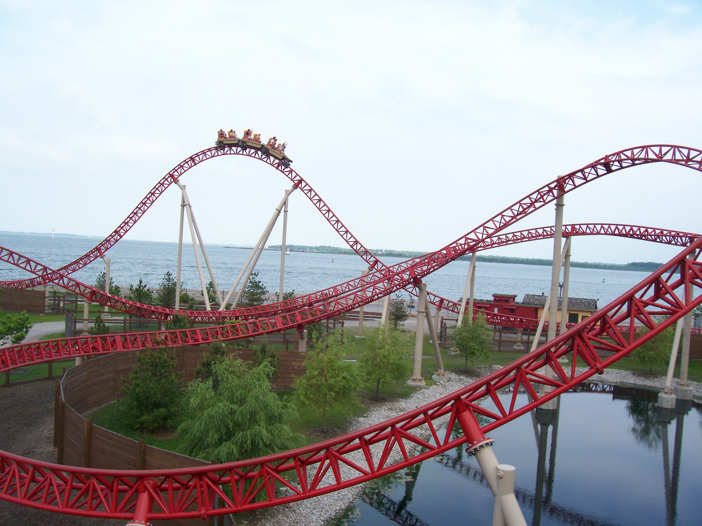 Top Thrill is an Intamin accelerator coaster, and the worlds second tallest coaster. Lanches rides from Zero to 120 MPH in less than 4 seconds and up a 420-foot tower, then quickly back down while twisting 270 degrees to the right. A few seconds later, you’re 420 feet in the air. In the race for pure adrenaline thrills, there is one winner: Top Thrill Dragster. Nothing else compares to this high-horsepower shot into the sky. From a standing start you’re launched forward, then straight up, then straight down and back to the finish line. The ride may be over in 17 seconds, but it’ll stay with you forever.