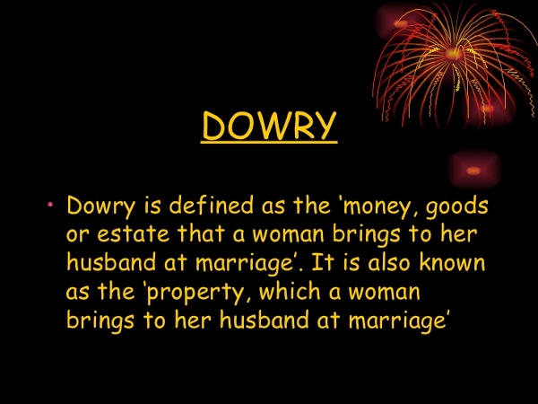 Dowry is prevalent in many parts of the world. Dowry is transferring parental property at daughter’s marriage. Dowry is an ancient old concept prevalent in Asia, North Africa and Balkans. If dowry is not given, then it leads to domestic violence, women harassment, marital abuse and dowry deaths.