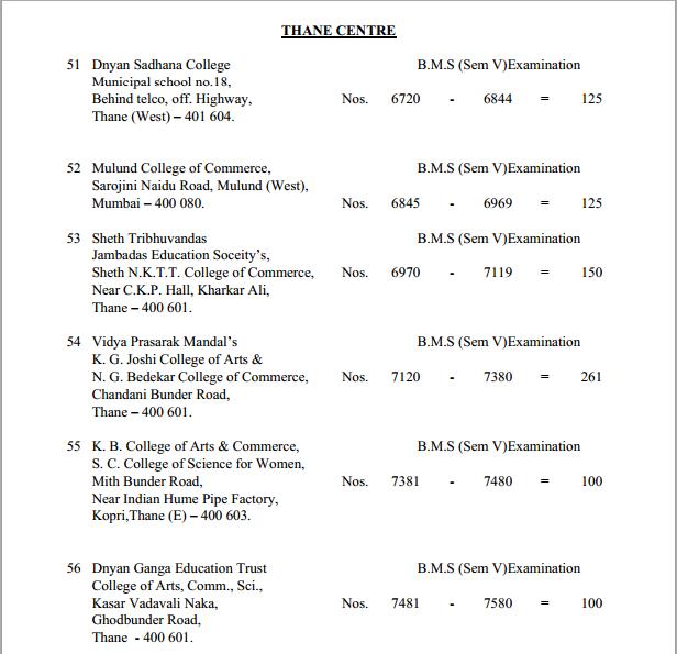 TYBMS Sem 5 Exams 2013 – Thane Centre for Seat Nos. 6720 to 7580
