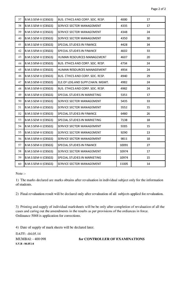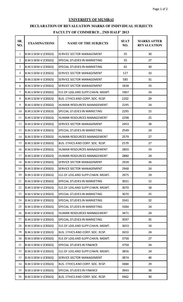 Mumbai University has declared the list of revaluation results for November 2013 exams.