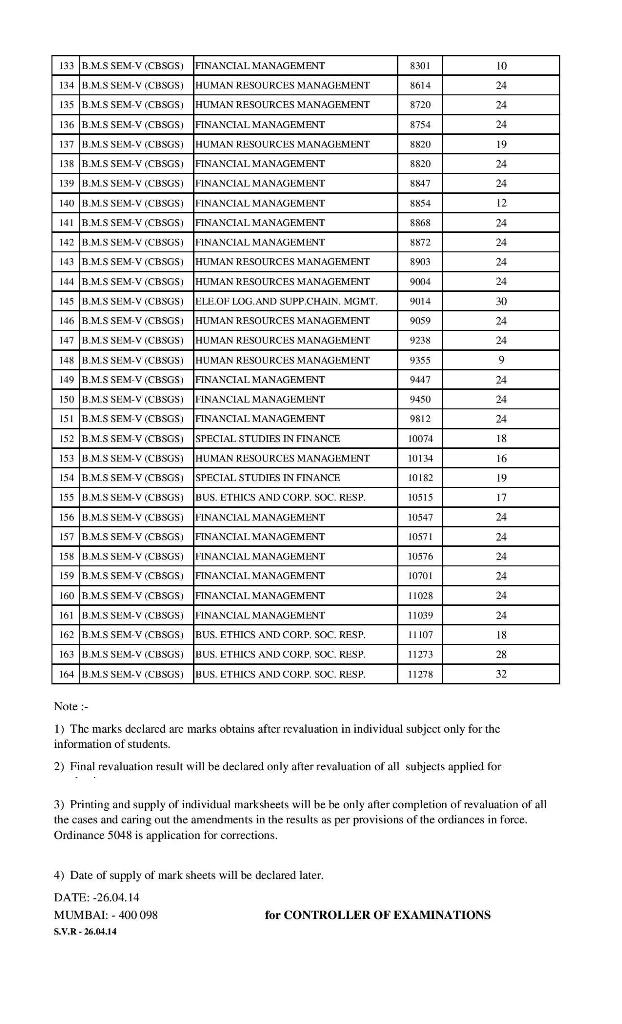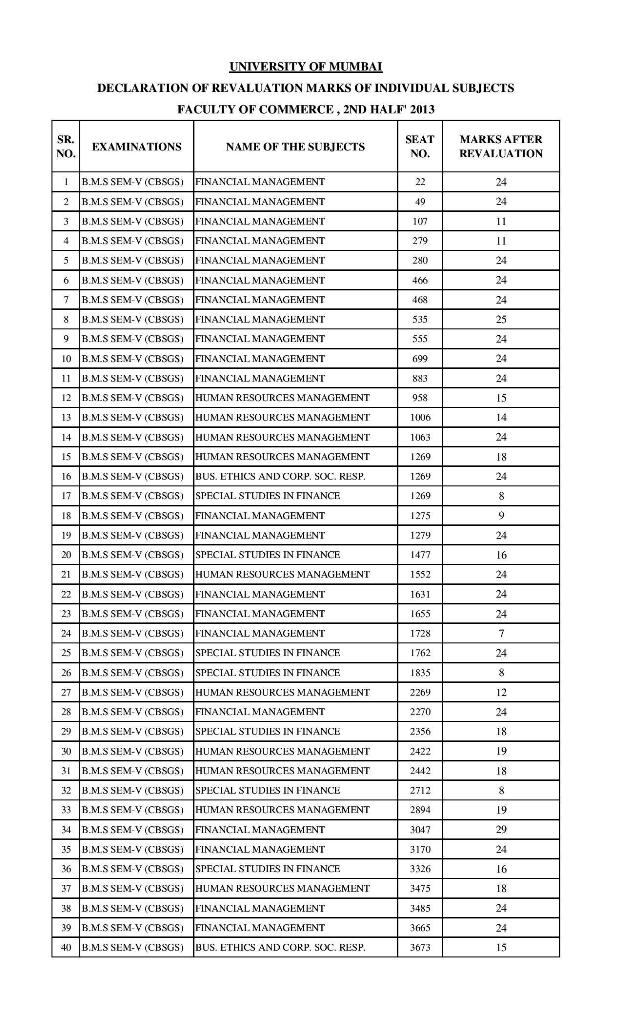 Mumbai University has declared the list of revaluation results for November 2013 exams.
