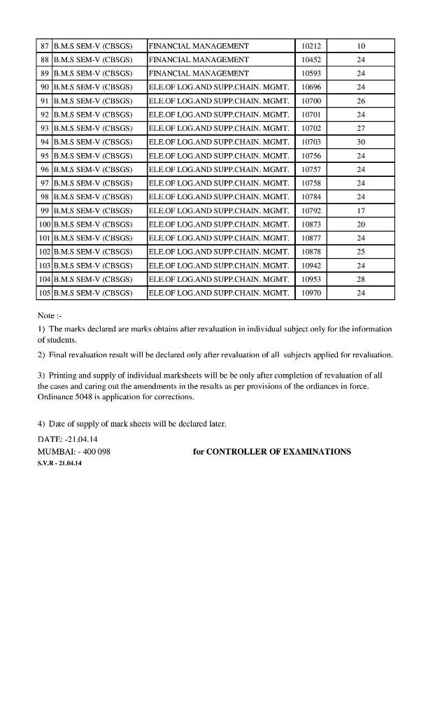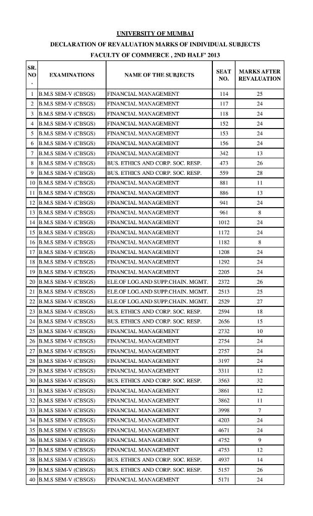 Mumbai University has declared the third list of revaluation results for November 2013 exams.