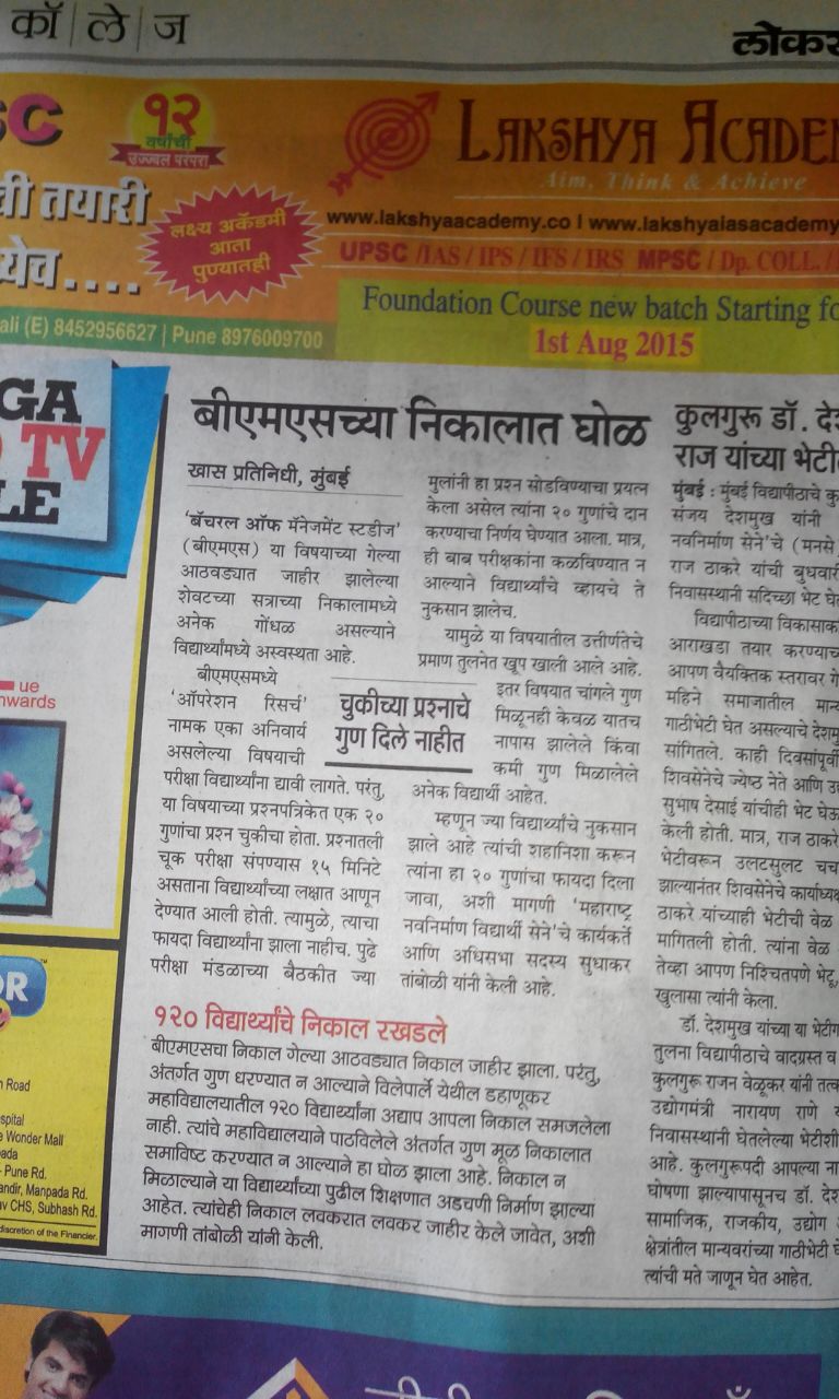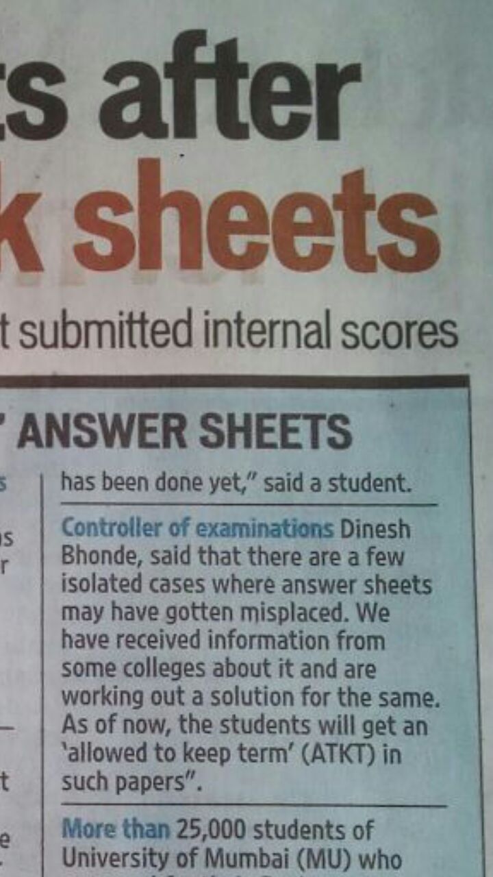 “I got only 20 marks in Operations Research paper which is next to impossible. I know what I have written in the paper. First of they made errors in question paper – Q.1b and Q.2b, then Mumbai University promises through the below news article in a newspaper that they will give the marks if we attempt. I have attempted the whole paper and I got only 20. They have made errors in checking also. Please help us MU!”