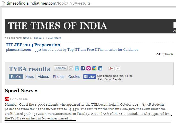 Home Alerts Results Alerts Worst Shocking Passing % of TYBMS Sem 5 CBSGS Results 2013-14 12 years ago 12 years ago Results Alerts Worst Shocking Passing % of TYBMS Sem 5 CBSGS Results 2013-14 by BMS Team 12 years ago12 years ago 528views 0 5 Around 51% of the 11,030 students who appeared for the TYBMS exam held in November 2013 passed it. Get Answers to your Doubts/Queries related to BMS results in this link – Post PaginationPrevious PostPreviousNext PostNext Like it? Share with your friends! 0 5 Posted by BMS Team We, at BMS.co.in, believe in sharing knowledge and giving quality information to our BMS students. We are here to provide and update you with every details required by you BMSites! If you want to join us, please mail to [email protected]. 5 Comments Cancel replyYou must be logged in to post a comment. Connect with: Facebook Google Twitter Previous Post Will you get 10 extra marks for sports? by BMS Team Next Post Grace Marks for getting Higher Class / Grade In BMS... by BMS Team Facebook comments: