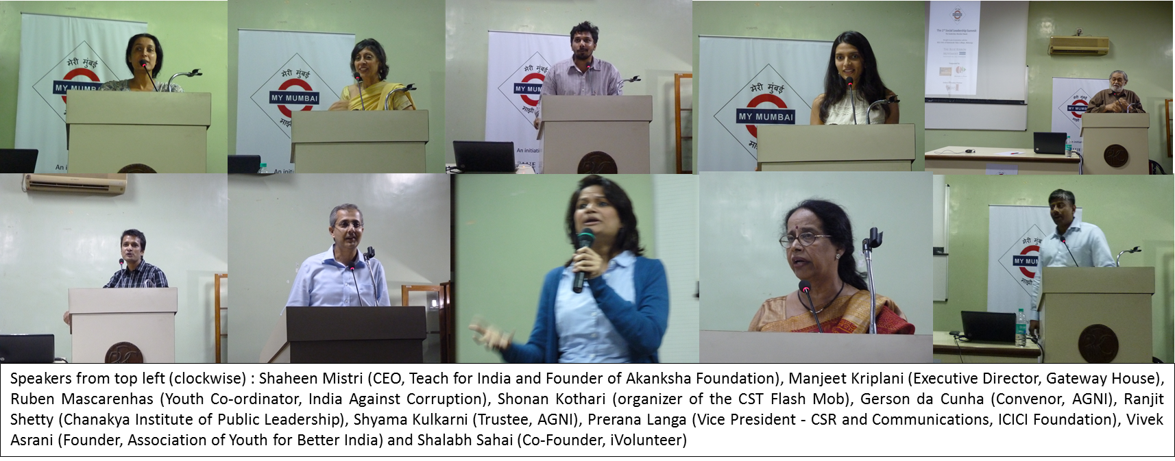 Organized in a TED-like format, it got together 10 speakers from diverse disciplines giving each speaker 18 minutes to share their key lessons in leadership, and how they can be applied to solve the issues facing the city. This was also an opportunity for the youth organizations present (India against Corruption, iVolunteer, NSS, Rotaract) to network with each other and the speakers.